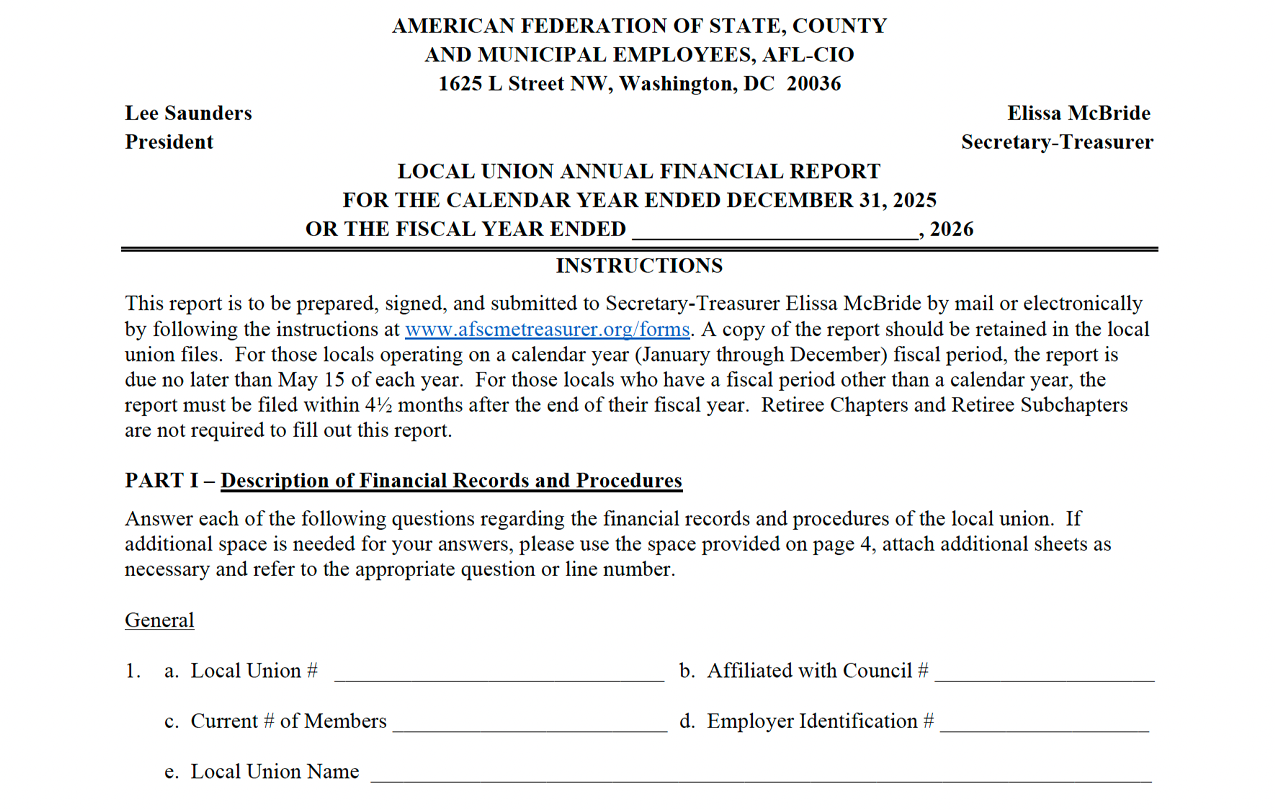 Local Union Annual Financial Report Form