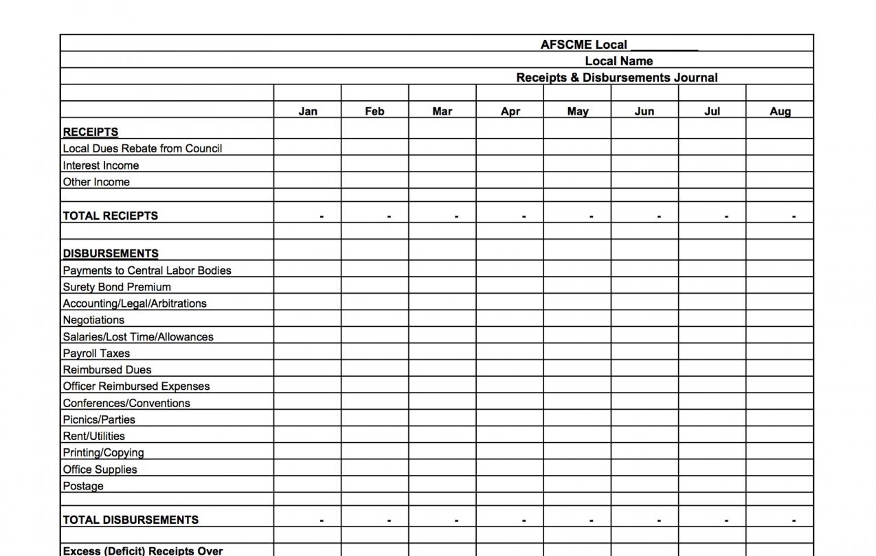 Sample Receipts and Disbursements Journal Download a sample spreadsheet tracking receipts and disbursements. Sample Receipts and Disbursements Journal Sample Receipts and Disbursements Journal