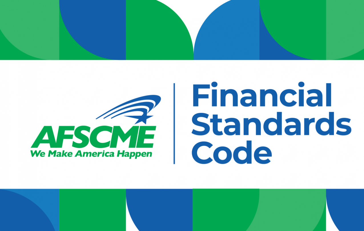 The AFSCME Financial Standards Code is a resource for those within AFSCME who oversee union finances—not only affiliate secretary-treasurers, but officers, executive board members, trustees, and AFSCME members. Copies of the Code are mailed to newly-elected secretary-treasurers and distributed at our popular Secretary-Treasurer Training classes.